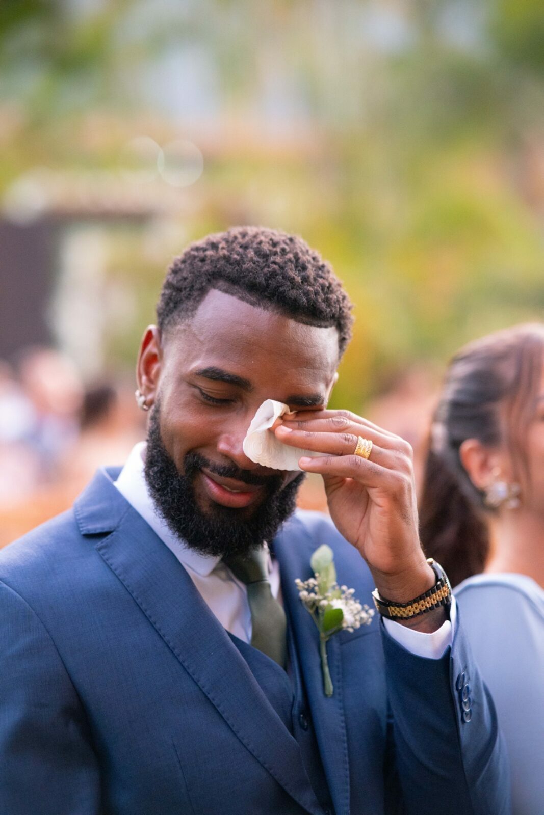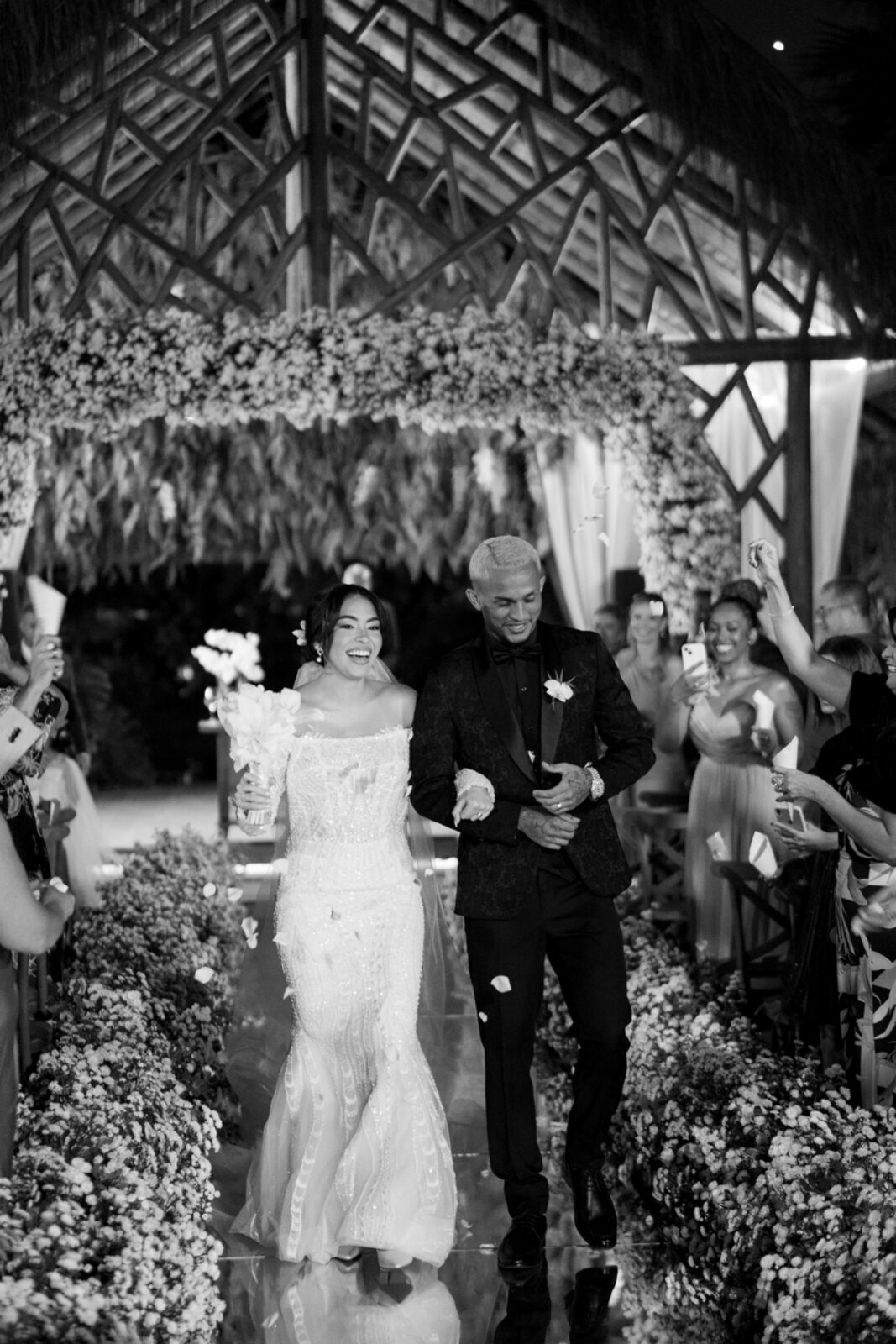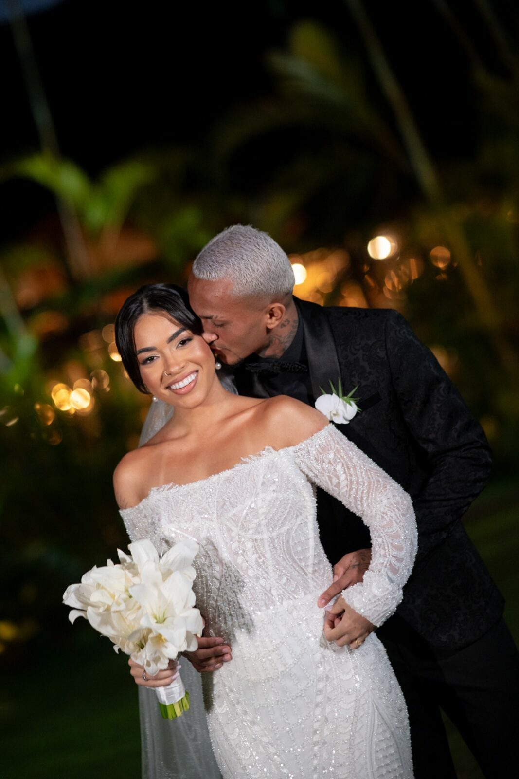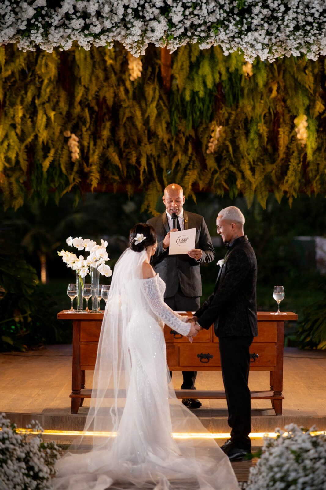 "E fomos felizes para sempre", escreveu Amanda ao publicar algumas fotos do casório. A cerimônia simples também foi compartilhada nas redes sociais por alguns amigos do casal. Companheiro de time, Bruno Henrique e a mulher, Gisellen Ramalho, também compareceram. Outro jogador foi Gerson, capitão do Fla, que ficou emocionado e precisou até secar as lágrimas.