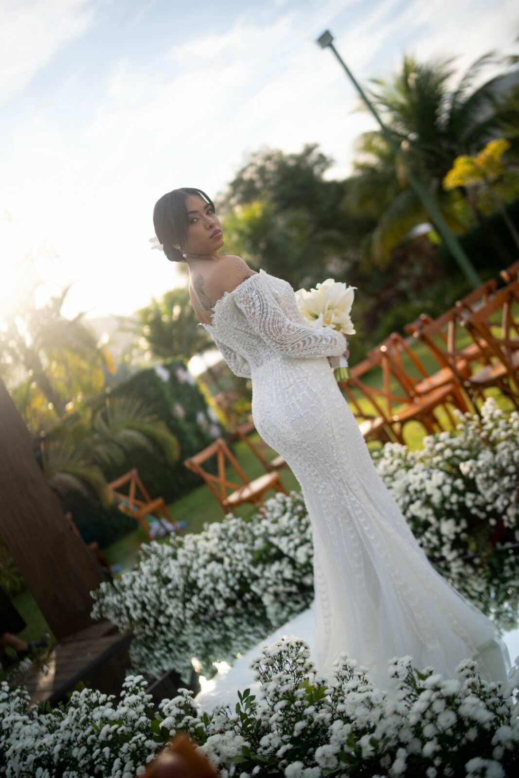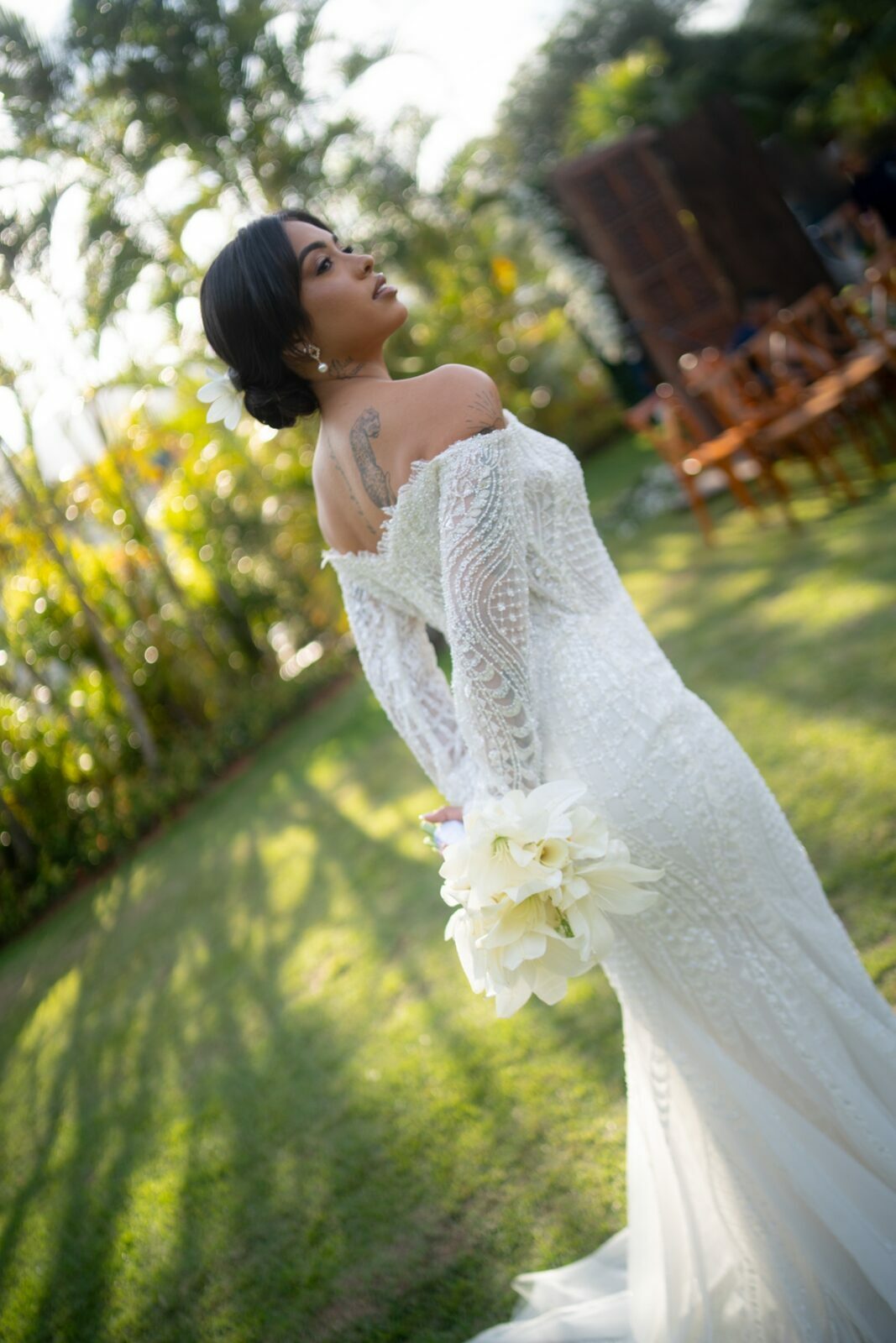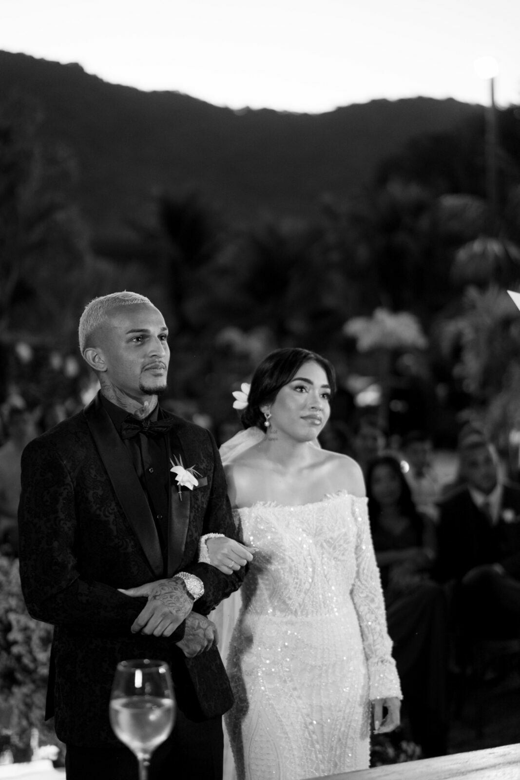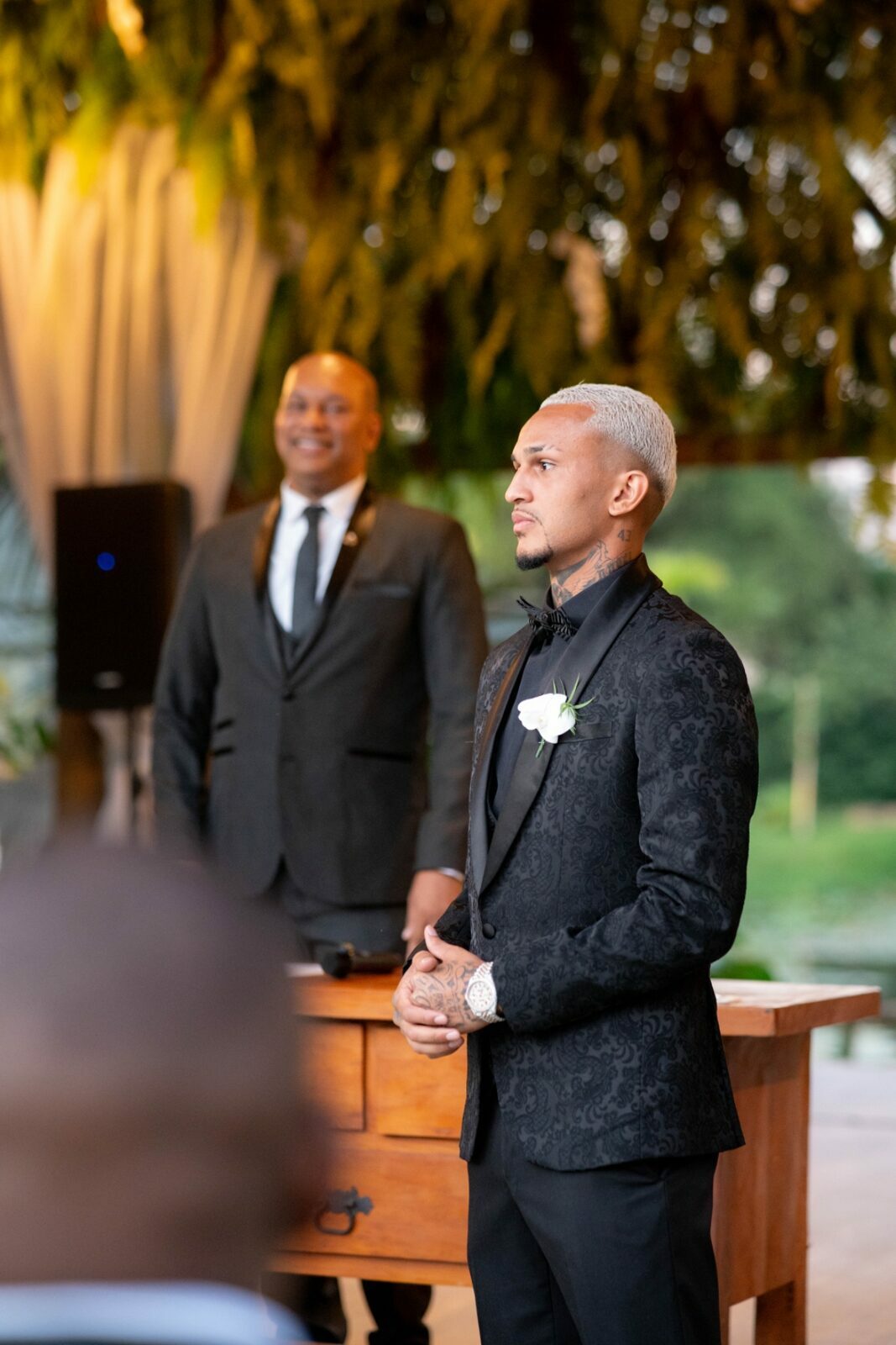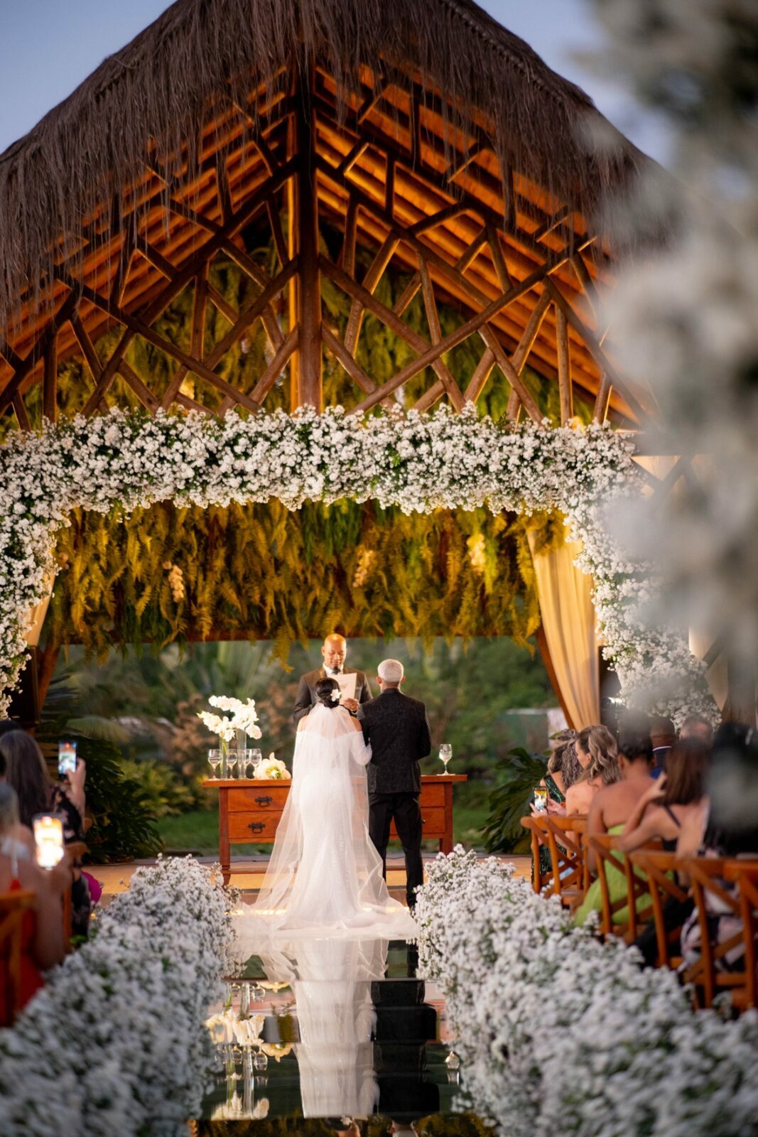 "E fomos felizes para sempre", escreveu Amanda ao publicar algumas fotos do casório. A cerimônia simples também foi compartilhada nas redes sociais por alguns amigos do casal. Companheiro de time, Bruno Henrique e a mulher, Gisellen Ramalho, também compareceram. Outro jogador foi Gerson, capitão do Fla, que ficou emocionado e precisou até secar as lágrimas.